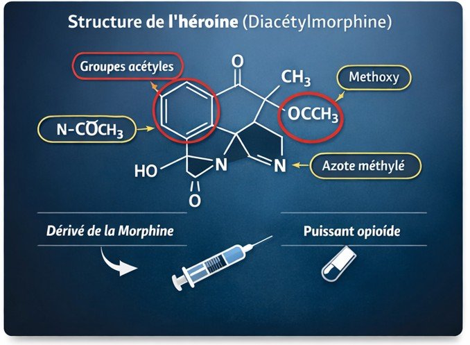 👉 En résumé, ce n’est pas seulement la dose qui rend l’héroïne dangereuse, mais bien sa structure moléculaire, pensée à l’origine pour améliorer un médicament, et devenue l’un des facteurs clés de son pouvoir addictif.