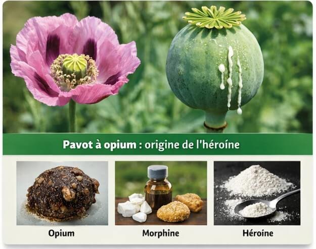 L’héroïne est une drogue semi-synthétique, obtenue à partir de la morphine extraite de l’opium. Sa transformation repose sur l’utilisation de réactifs chimiques spécifiques, connus et documentés de longue date.